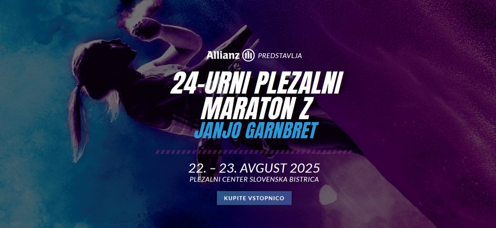 Letošnje poletje poleg tekme svetovnega pokala v Kopru prinaša še en edinstven plezalni dogodek – 24-urni plezalni maraton z Janjo Garnbret. V sodelovanju z Janjo vas kot najbolj strastne plezalce v Sloveniji vabimo k sodelovanju na plezalnem maratonu, ki bo potekal 22. in 23. avgusta 2025 v največjem plezalnem centru v Sloveniji – v Slovenski Bistrici.