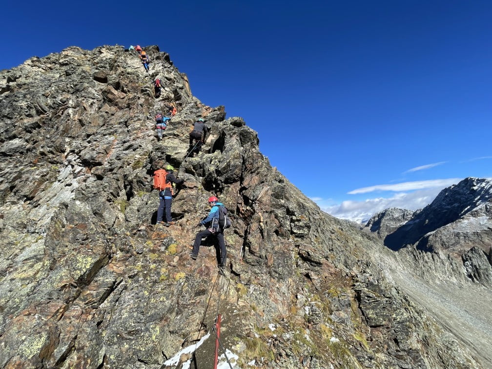 Kaj: Schleinitz 2905 m: po grebenski ferati B/C. Glödis, 3206 m: po ferati B oz. varianta z mostom C.