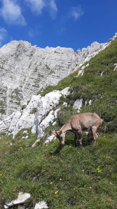 Najprej bomo po dobrih 20 minut hoje dosegli kočo Brazza. Nadaljevali bomo po zložni poti čez travnata pobočja, višje bomo hodili po stari vojaški mulatjeri. Do vrha nas bodo spremljali številni kozorogi. Sestop bo potekal po poti vzpona.