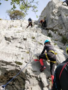 Najprej se bomo naučili navezovanja na plezalni pas, izdelovanja bolj uporabnih vozlov in uporabo samovarovanja na vrvnih ograjah ter osnov plezanja in spuščanja z vrvjo v steni. Vse to bomo tudi preizkusili v plezališču na praktičnih vajah. Nato se bomo po neoznačeni poti spustili do rečice Glinščice. Naučili se bomo, kako se prebrodi reka (če bo dovolj vode). Sledil bo vzpon na greben nad Počivenco (plezanje II. težavnostne stopnje ob vrvnih ograjah) do spomenika legendarnemu tržaškemu alpinistu Emiliu Comiciju. Sestopili bomo mimo cerkvice Matere božje na Pečeh do slapu Supet pri kraju Botač. Čakal nas bo le še vzpon nazaj k avtom in pa seveda obvezen zaključek z analizo tečaja.