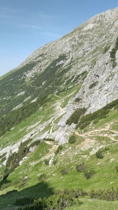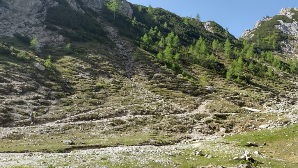 Sledi rahel spust in daljše prečenje vse do odcepa za Tosc. Tu zagrizemo v kolena, vse lepši razgledi nam lajšajo zadnji napor.