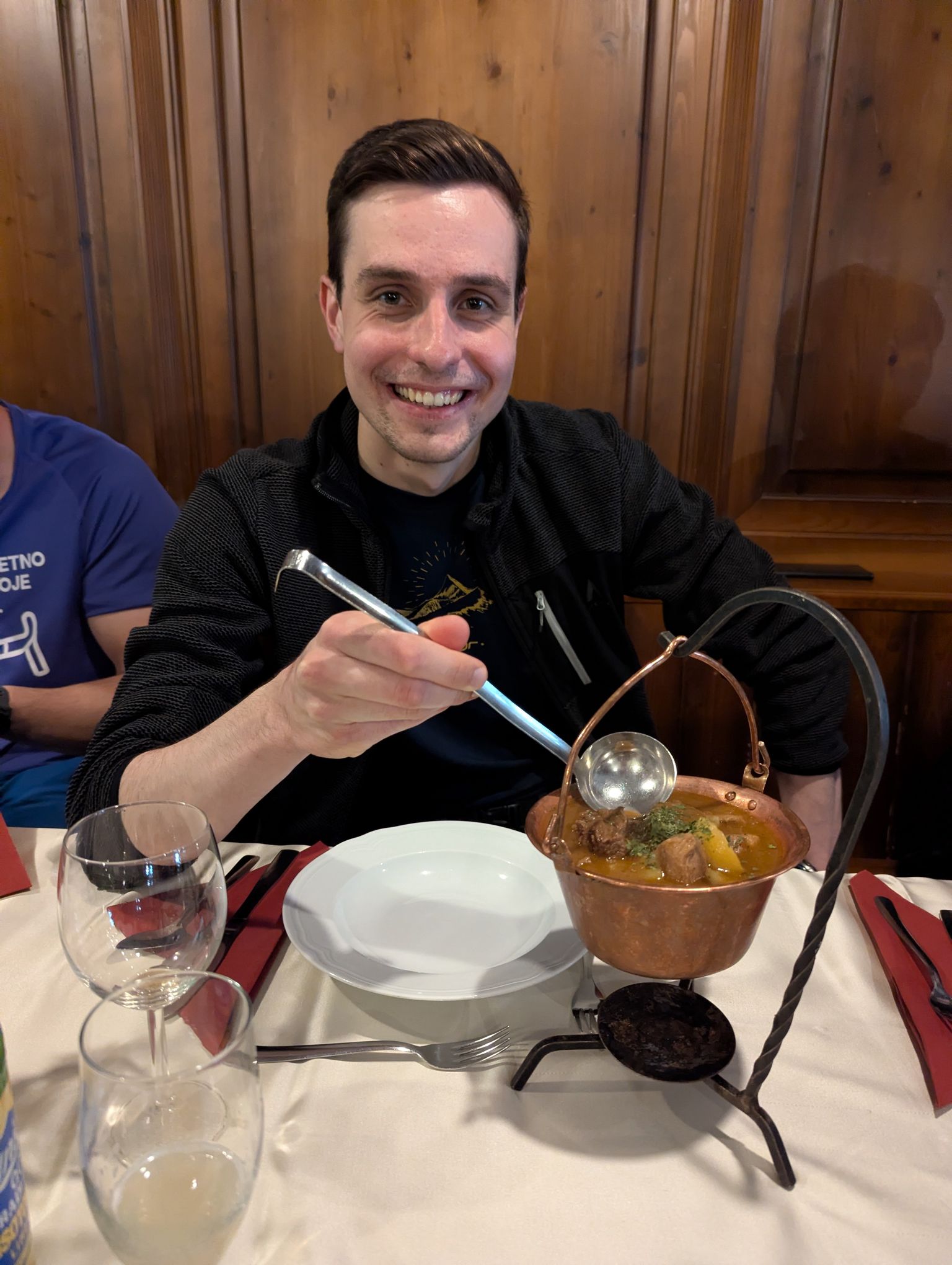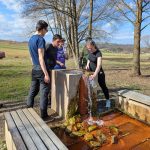 Dan je bil sončen in družba odlična ☀️. Ustavili smo se tudi pri vrelcu mineralne vode Nuskova, ki je imela za nas nekoliko preveč izrazit okus po žveplu. V Murski Soboti smo si privoščili postanek za kosilo. Najbolj nas je navdušil domači bograč, postrežen v zanimivi bakreni posodi.